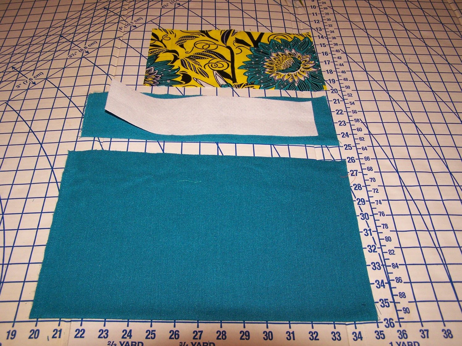 - Cut solid any color fabric on the fold 4 1/2 inches width x 13 1/2 inches length (used as bottom of purse stabilizer)