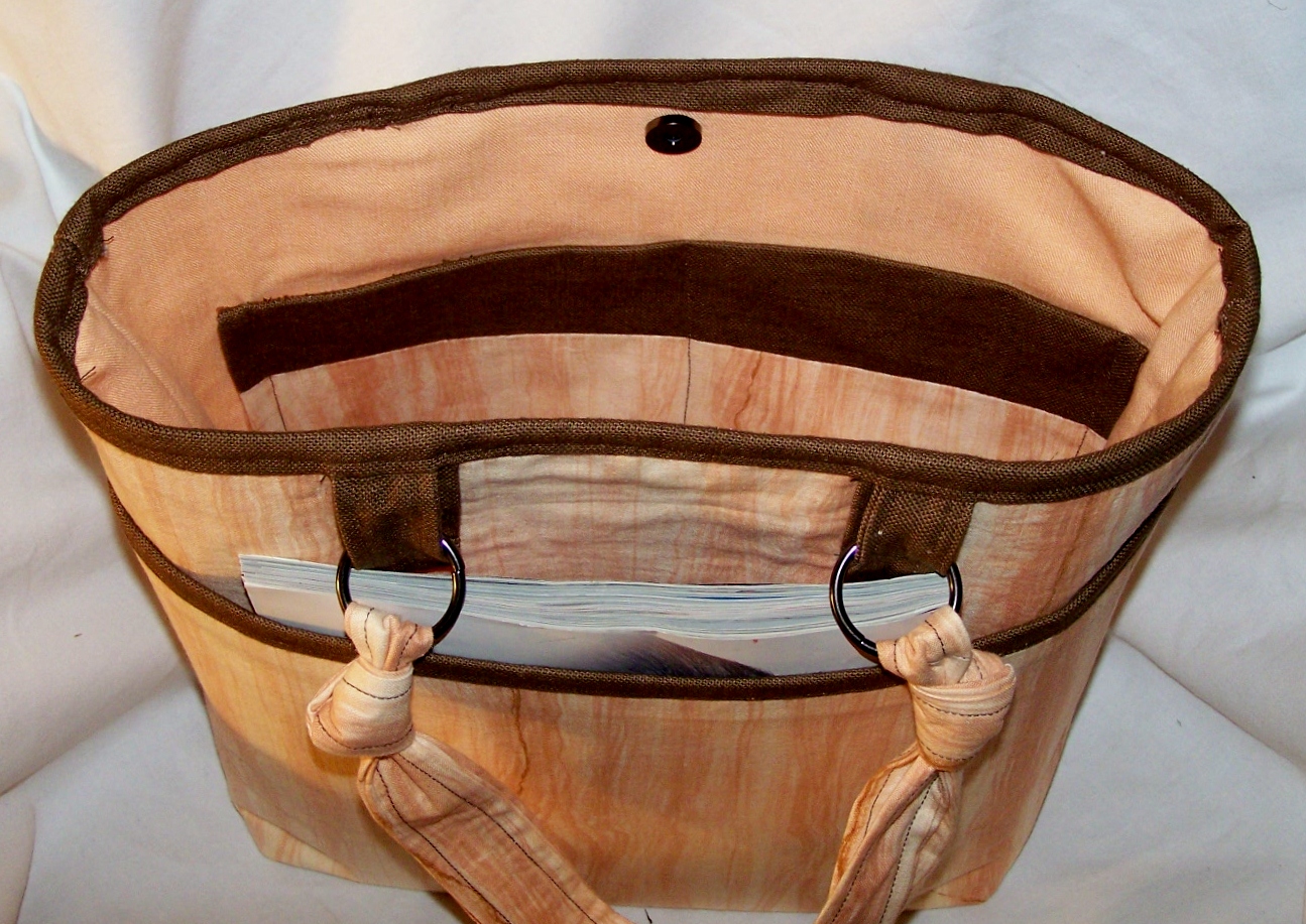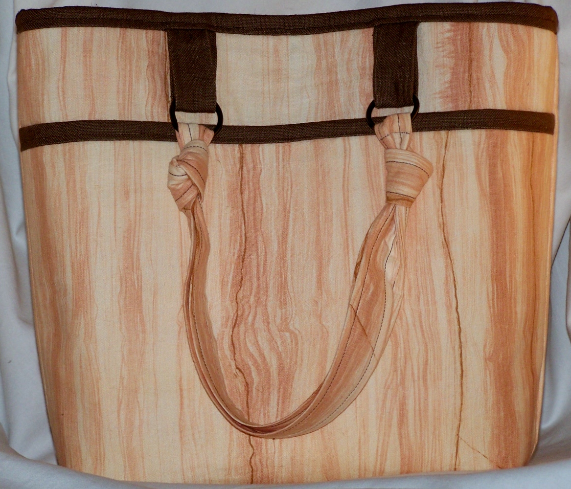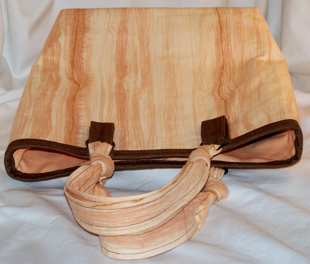 As I prepare for the opening of my Etsy store, I realized that I didn’t have an extra-large tote bag in my arsenal. So here’s the Spring Tote bag. I’ve had this fabric for 10 years. I can’t remember what I would have made originally, but it looks great as a extra-large tote bag. The illusion of the wood grain makes it pop, and the hint of brown gives you a nice color contrast.