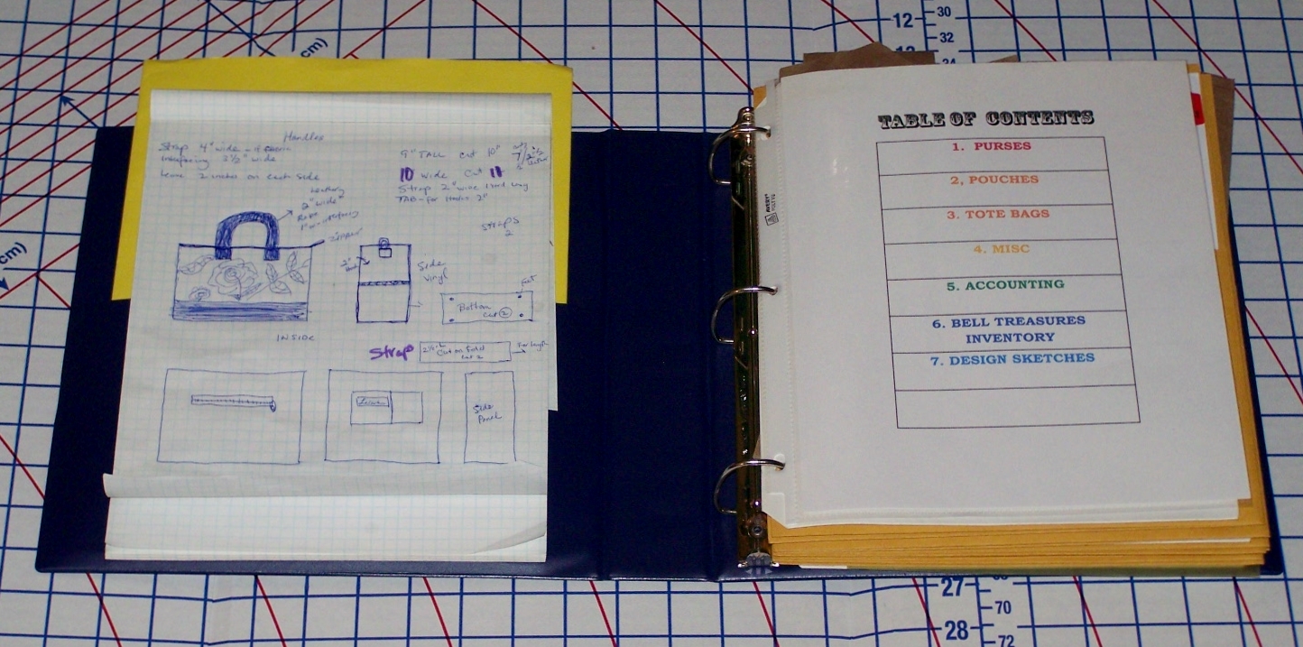 I discovered the need for a journal/organizer for my patterns, designs, purchases, inventory, shopping, and notes. I was so tired of searching for my patterns, receipts, and shopping list that I made this journal to organize it all.