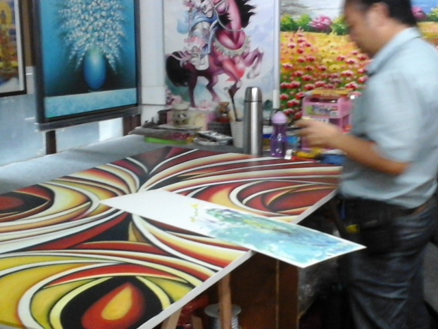 It’s rare to find an artist at work in the shop when you purchase art in the U.S. At the SI Yuan Gallery you are drawn into the shop by the vibrant colors of the art. I feel lucky to have met the artist and even more so when he allowed me to photograph him at work.