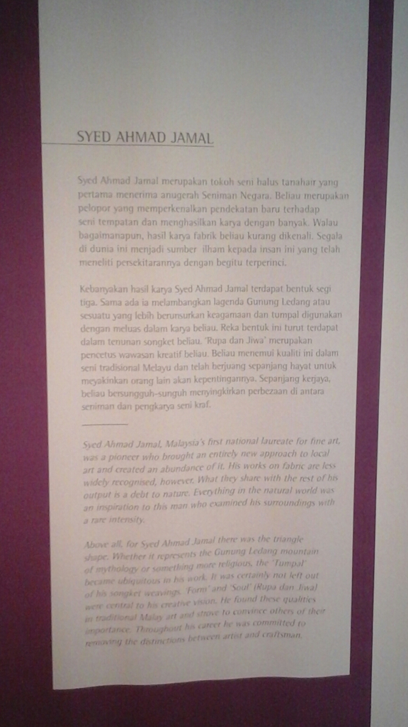 I happened to stumble upon an art exhibit at the Bank Negara Malaysia Museum and Art Gallery on the Fine Art of Fabrics. I felt really excited about learning more about the history of Batik since I had taken the class. This is the first time there has been an exhibit of this kind in Malaysia.