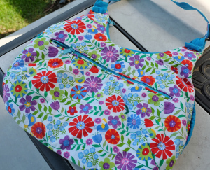 I love the wonderfully happy fabric (YAY COLOR) and matching zips.