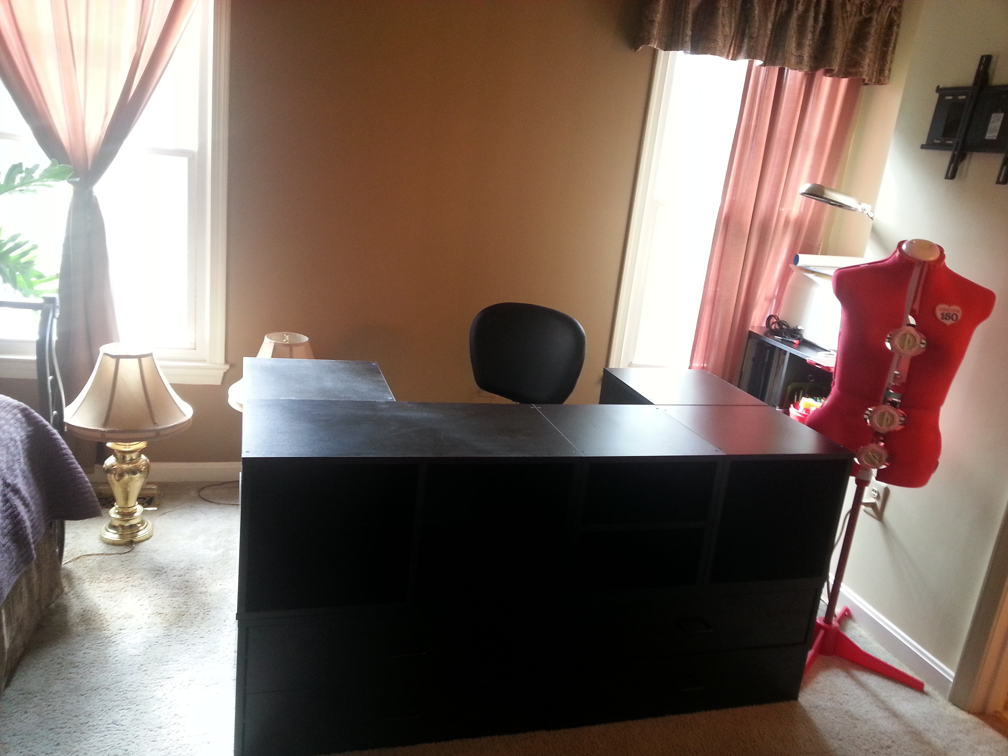 Handbag Junkies Another creative workspace! I moved my craft-space into my guest room, and spent two weeks packing, unpacking, and decorating. I’ve used this space before, but had to move out of the room when my son moved back home, then he left after several months started a family and now we all have a space that we can share one year later.
