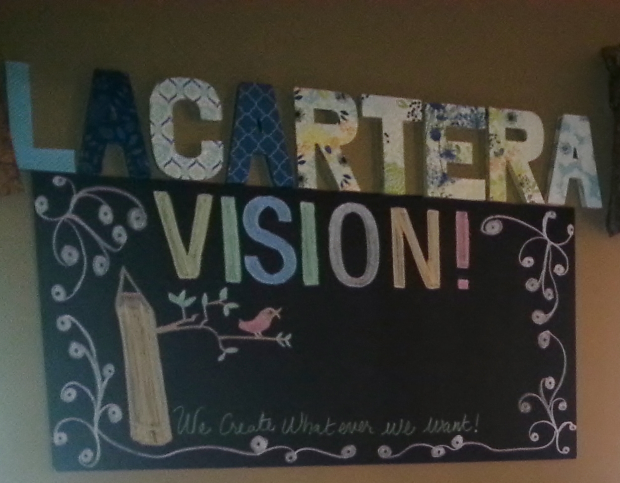 I looked for a corkboard to cover with fabric and ribbon that was large enough to fit the wall. But I found a chalkboard at my local Home Depot building supply store instead that would allow me to capture my design process or things-to-do, which I could see when I entered the room.