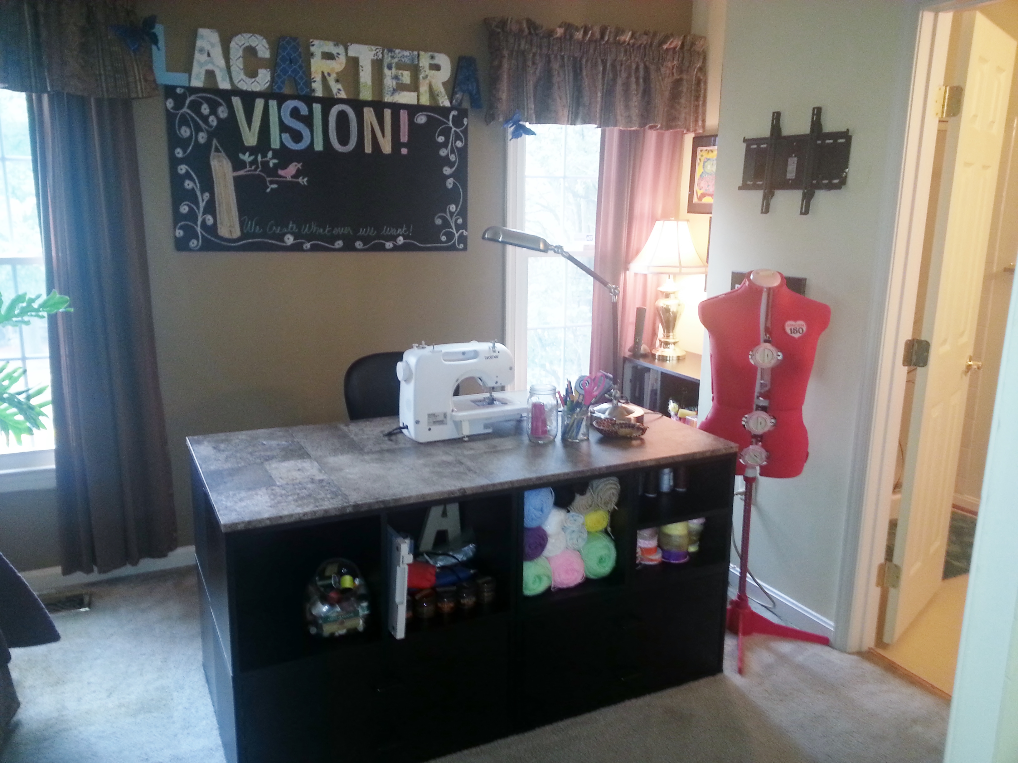 What a great work/create/dream/whatever you want ..domain! It’s nothing like having your own space, whenever and however you want to use it!! You go. The table is great! Long hours will be spent there I’m sure. 🙂 Cute, Cute baby!!!