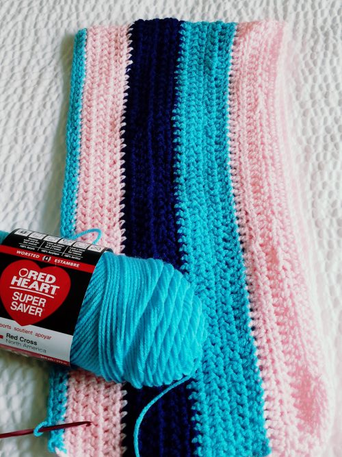 Since it’s official that my darling grand-daughter will arrive in July, this grandma has started crocheting an adorable blanket for her to enjoy for years to come. I have settled on the colors with help from mom, but I don’t have a final design in mind so I’ve been testing out some simple but different looks.